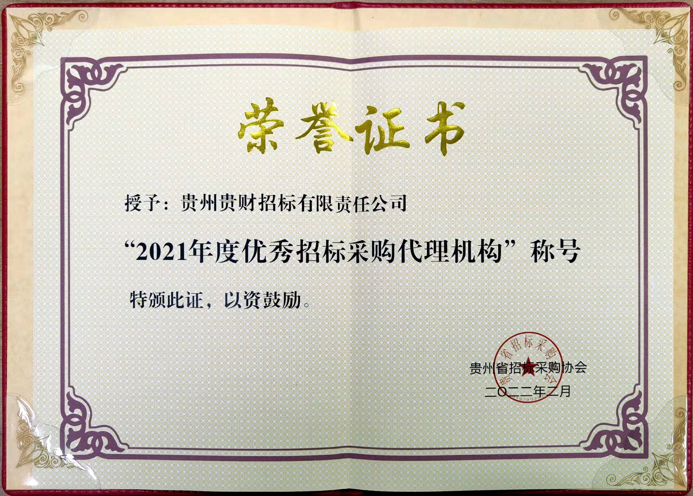 貴州貴財(cái)招標(biāo)有限責(zé)任公司再次獲評(píng)“優(yōu)秀招標(biāo)代理機(jī)構(gòu)”稱號(hào)